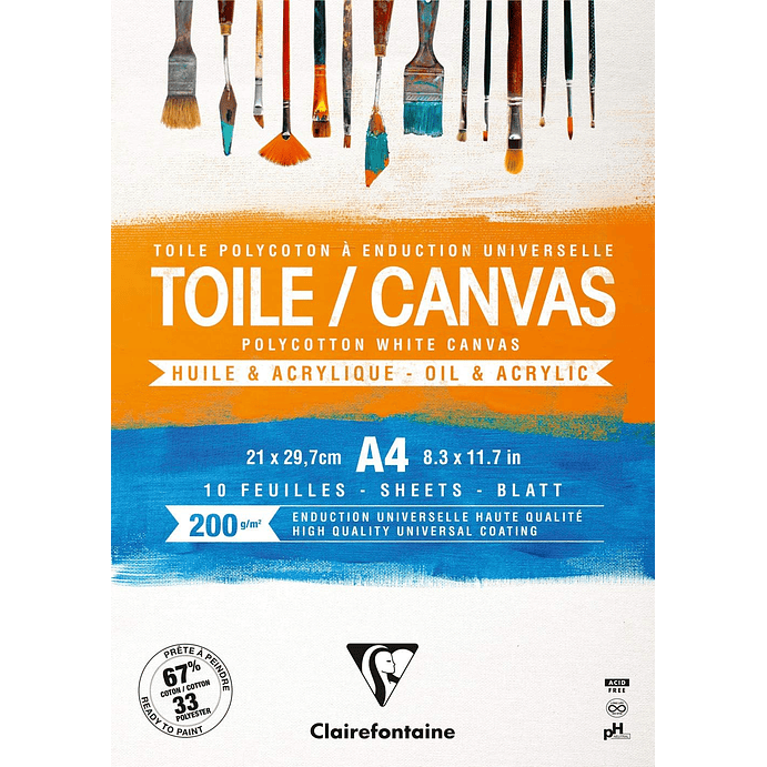 - Lienzo imprimado listo para usar, 200 g, 67% algodón y 33% de polyester