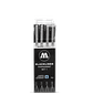 El juego 1 consta de 4 marcadores con los siguientes anchos de trazo: 0.05 mm, 0.1 mm, 0.2 mm, 0.4 mm