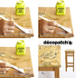 El papel Décopatch se adapta perfectamente a la forma de todos los objetos (planos o irregulares) y sobre todos los materiales (papel maché, madera, plástico, hierro, vidrio, poliestireno, metal, terracota, cerámica, corcho, etc.).