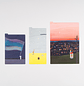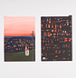 El tamaño A5 presenta Count the Lights, un diseño popular en la línea Hobonichi Techo 2022. Representa un cielo profundo en una puesta de sol durante ese momento mágico en el que el sol está a punto de desaparecer por ese día. La parte trasera muestra cómo la ciudad brilla de cerca como un vitral, casi como un tejido.