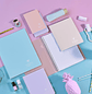 5 colores pastel surtidos: azul hielo, menta, lila, rosa empolvado y coral.