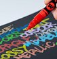 El marcador 120PP es ideal para casi todas las superficies lisas y rugosas, con posibilidad de intercambiar hasta 5 puntas diferentes 0.5 mm, 1 mm, 1.5 mm, 1.5mm (fieltro) y la punta de 2 mm (fieltro) que ofrece precisión junto con una jugosa aplicación de color. La tinta permanente a base de alcohol es opaca, brillante y de secado rápido.